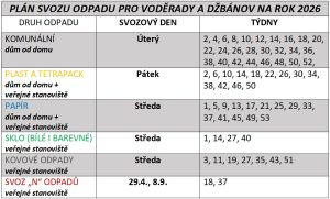 Plán svozu odpadu na rok 2026